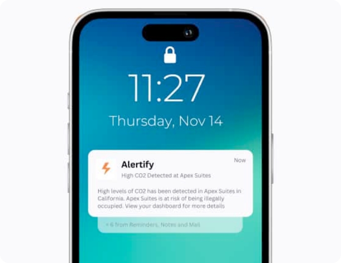 Alertify の高度なCO₂モニタリングは、リアルタイムのグラフデータで入居状況を可視化し、オーナーに確実な管理手段を提供します。