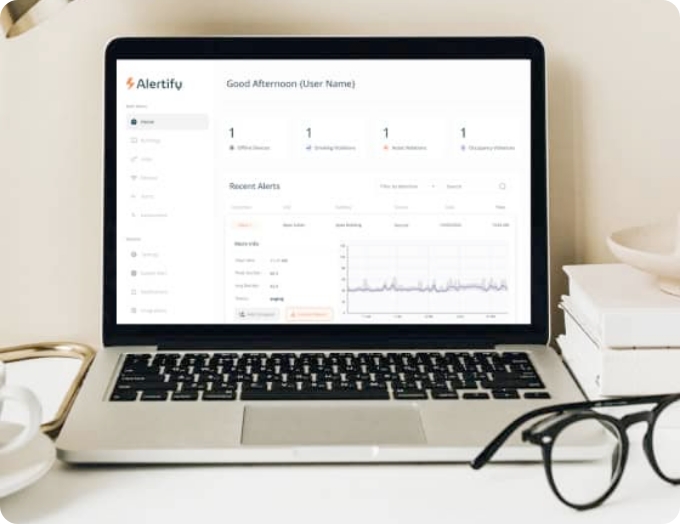 - AlertifyのAI 搭載モニタリングで、室内環境をスマートに管理。